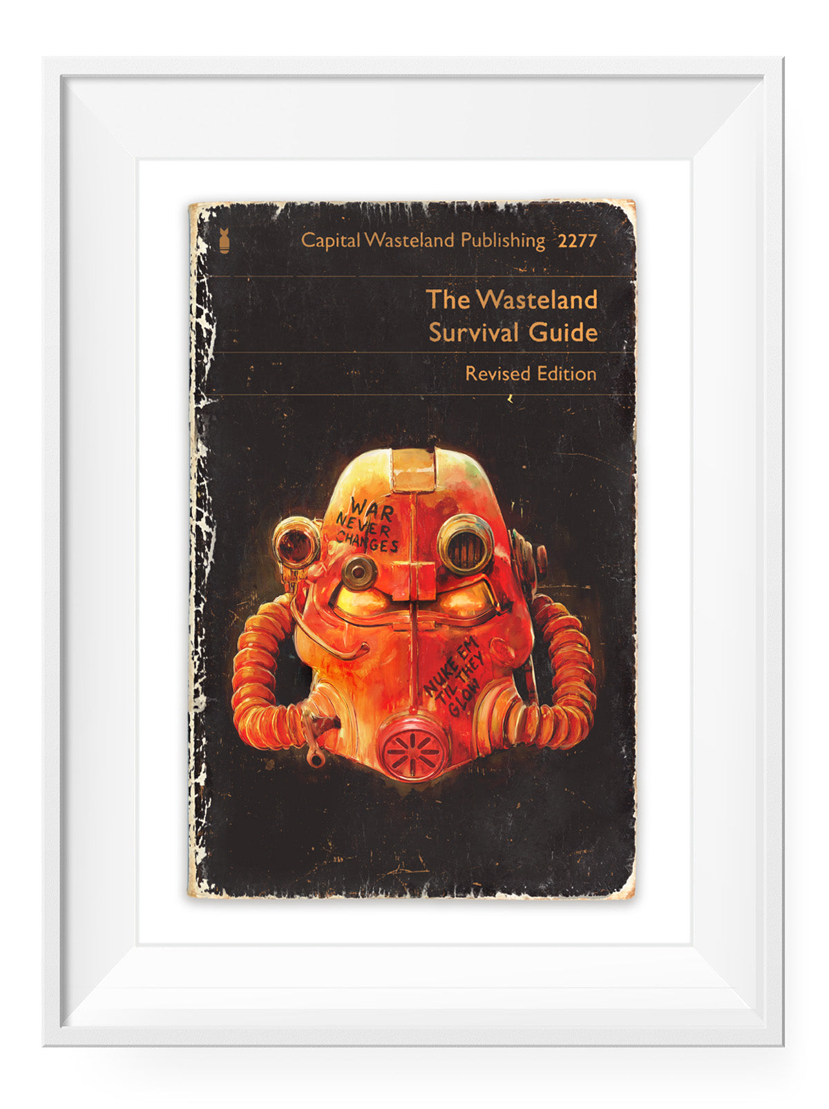 Colourful and contemporary, the Videogame Book Covers Art series is a stylish addition to the modern home. This wasteland survival guide art print is inspired by retro post-apocalyptic videogames and vintage instructional manuals, blending dark humour with bleak survivalist aesthetics.