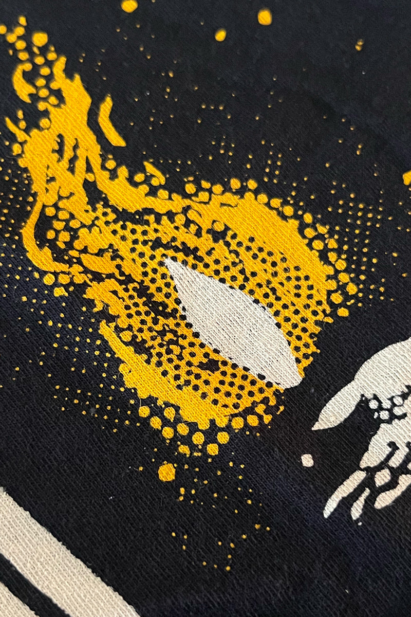 Printed using a discharge process with permanent, water-based inks, the artwork is soft to the touch and fully embedded into the fabric, with no heavy ink overlay, just pure comfort. The shirt itself is made from 100% ringspun cotton, offering a buttery-soft feel and lived-in quality from the very first wear.